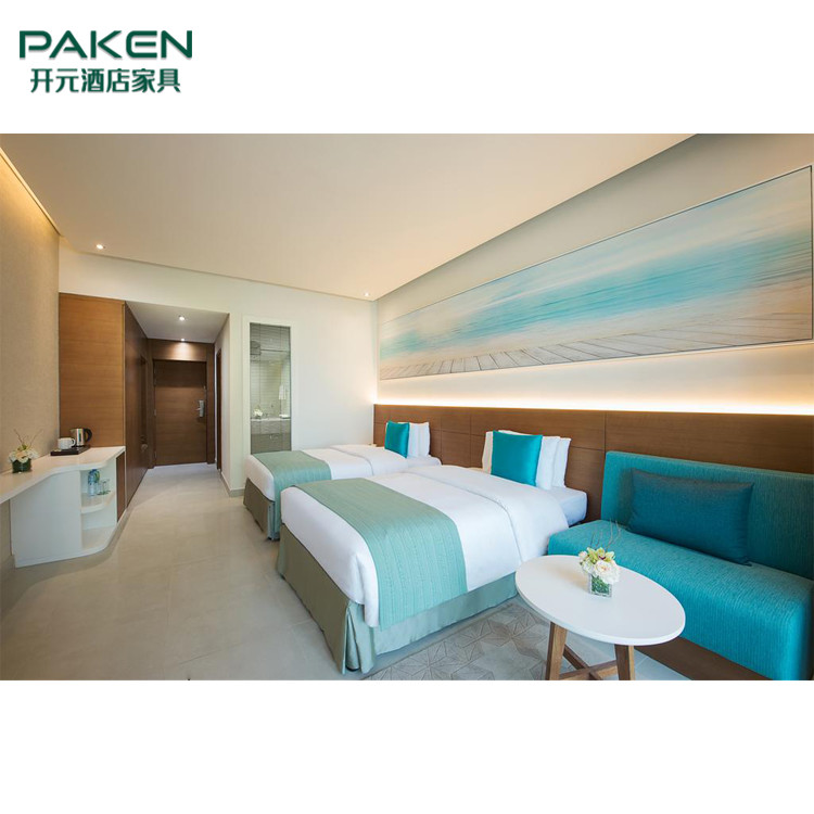 ขายส่งสีอ่อนดีไซน์เรียบง่ายเฟอร์นิเจอร์ห้องนอนของโรงแรมพร้อมหัวเตียง
