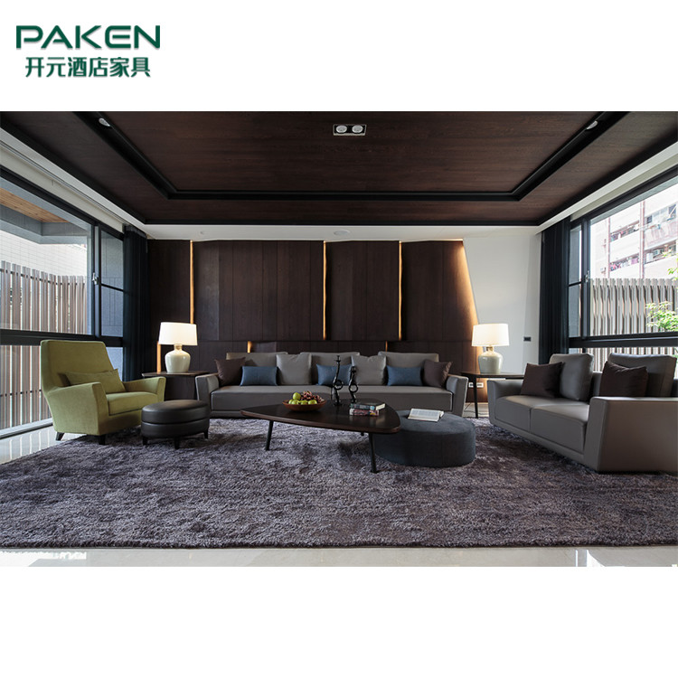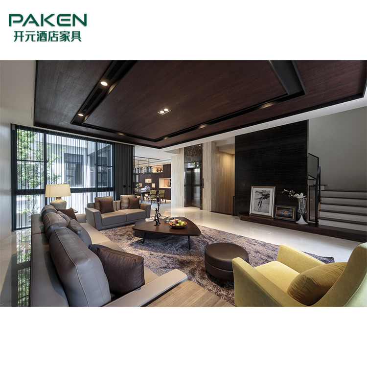 สไตล์อบอุ่นปรับแต่งเฟอร์นิเจอร์ห้องนั่งเล่นวิลล่าสมัยใหม่และไม้และหินอ่อน